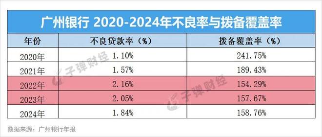 在资产质量方面,广州银行2024年不良率为1.84%,同比降低0.21%。而此前在2022年与2023年,不良率分别为2.16%与2.05%。