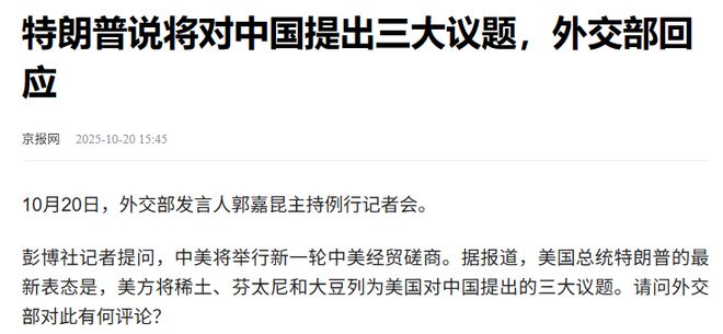前几个月,特朗普还一直在对外放风,说中国要下上万亿美元的大单,要采购波音飞机等等,可这回呢,他仅仅提了3个议题,分别是稀土、芬太尼和大豆。