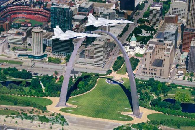 波音生产飞机飞过密苏里州圣路易斯市。图片来源:波音官网
