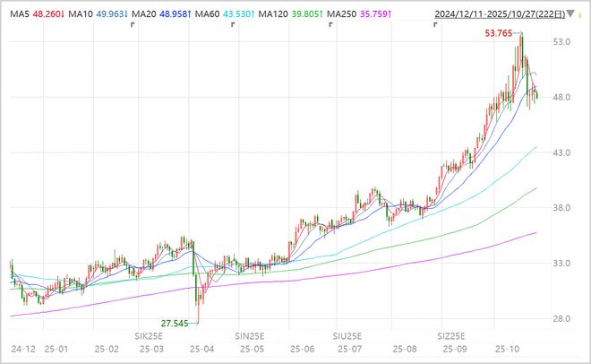 于是,白银价格从10月17日开始大幅下挫,仅三个交易日又跌回47美元,跌幅超过10%。