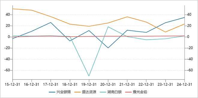 2025年上半年,兴业银锡、盛达资源、湖南白银、豫光金铅净利率分别为31.7%、11.4%、1.4%和2.2%。显然,中游赚取的是加工费,属于低毛利制造业,生意模式远不如上游。