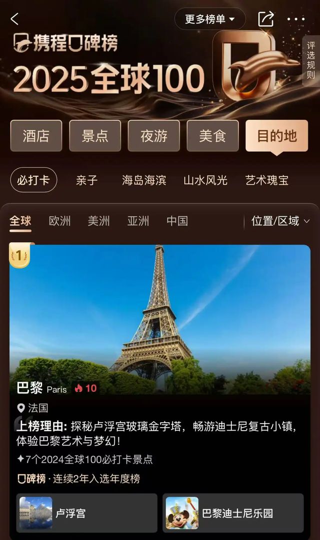 正是这次经历,让她开始将携程口碑榜纳入行前规划的必备环节。对她而言,这份榜单提供的推荐真实可靠,大大节省了筛选信息时消耗的心力。