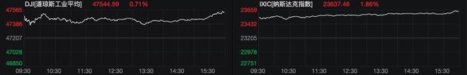 中新经纬10月28日电 美东时间周一,美股三大股指全线收涨,道指涨0.71%,标普500指数涨1.23%,纳指涨1.86%,三大股指均创下历史新高。