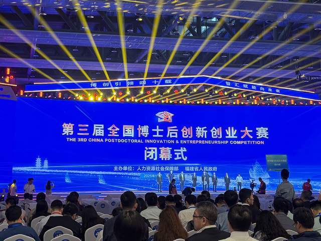 10月28日,第三届全国博士后创新创业大赛总决赛在福建省泉州市圆满闭幕。人力资源社会保障部党组成员、副部长俞家栋出席闭幕式并宣布大赛闭幕,福建省人民政府党组成员、副省长林瑞良致闭幕辞。闭幕式上,为获奖代表进行了颁奖,并举行了项目签约仪式。