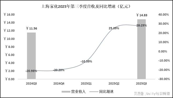 2025年前三季度,上海家化总营收为34.78亿元,同比增长10.8%,显著跑赢行业平均增速(根据国家统计局数据,2025年1月至9月,限额以上单位化妆品零售额同比增长3.9%)。
