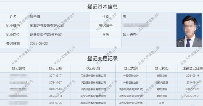 据悉,靳毅离职后,华安证券原固收分析师颜子琦加盟,担任固收首席分析师。中证协信息显示,颜子琦执业机构于9月1日从华安证券注销,9月22日变更为国海证券。