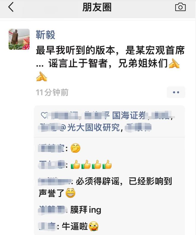 不过,就在刚刚,该宏观首席发了朋友圈进行澄清:“最早听到的版本,是某宏观首席;谣言止于智者,兄弟姐妹们”。
