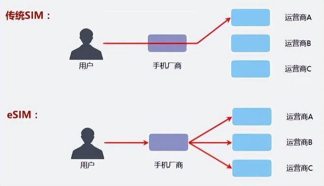 与传统SIM卡相比,eSIM最大的特点,就是没有实体卡,而是通过“空中写卡”方式,实现手机端远程配置,用户可以轻松在线切换运营商。