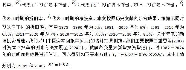 我们按照2008—2024年的年均下降速度(0.73%)外推未来10年的资本回报率情况,代入新增投资增速方程,可以得到2026—2030年期间的新增投资增速在5.2%左右。根据当期固定资本存量、折旧率和新增投资数据,我们可以测算得到2026—2030年中国的资本存量数据。