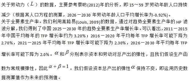 表1 基于增长方程测算的中国经济潜在增速