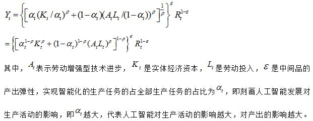 我们的动态一般均衡模型主要包括企业部门、居民部门和政府部门。参考Aghion(2017)的的做法,我们将含有人工智能发展的生产函数设定为: