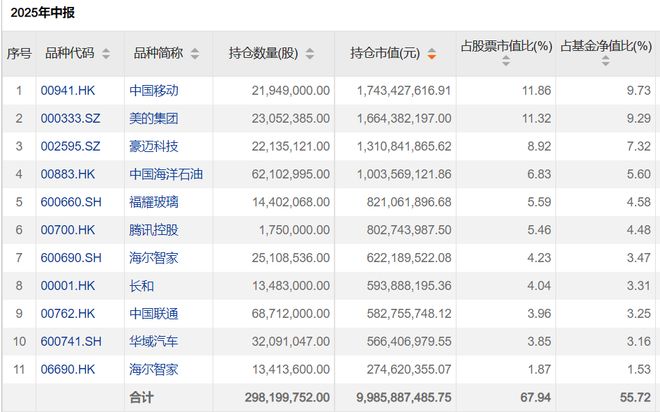 其重仓股以中国移动、中国联通、中海油等红利白马股为主,这些在熊市中提供稳定防御的资产,在2025年的成长牛市中与市场行情格格不入。