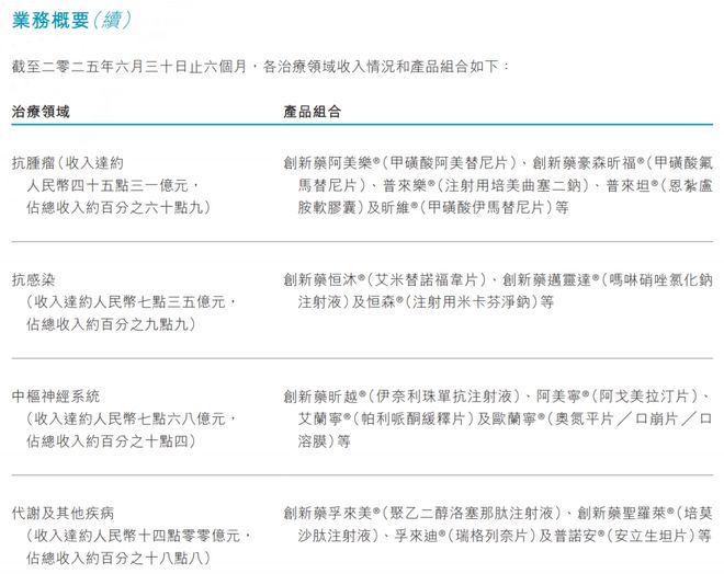 随着公司规模扩大,钟慧娟也开始将目光投向创新药领域。连续多年研发投入下,翰森制药已经形成了抗肿瘤、抗感染、中枢神经系统、代谢及其他疾病四大类业务板块,包括阿美乐(甲磺酸阿美替尼片)、豪森昕福(甲磺酸马替尼片)在内的7款创新药已经在国内上市并产生收入。