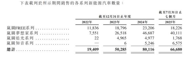 招股书数据印证,2025年1–7月,岚图累计销售66680辆车,其中,岚图梦想家贡献40111辆,占比高达60.15%。