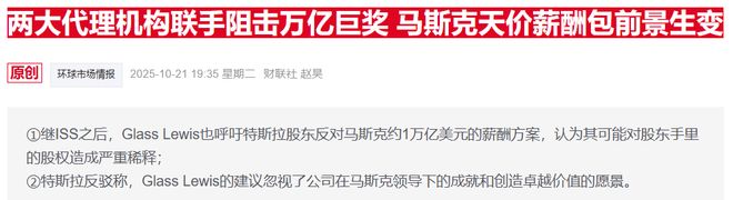 先前,ISS和Glass Lewis两家知名咨询公司建议特斯拉股东反对马斯克的薪酬计划,理由包括金额巨大、董事会缺乏独立性、对股东手里的股权造成严重稀释等。