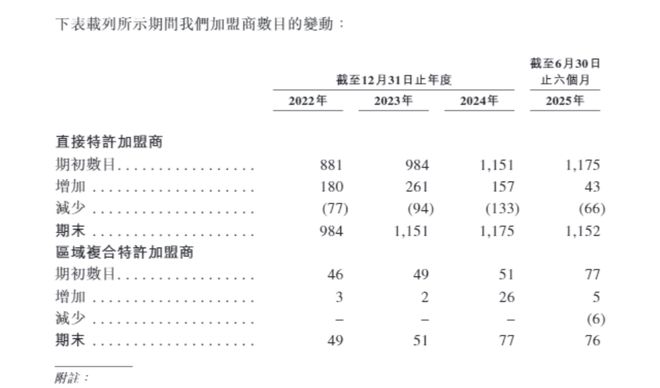 然而,2022年至2024年,八马茶业的加盟商数量(包括直接特许加盟商和区域复合特许加盟商)分别为1033名、1202名、1252名。以此计算,2023年、2024年,八马茶业加盟商数量净增加分别为169名、50名,增速明显放缓。2025年上半年,其加盟商数量更是不增反减,较2024年底净减少了24名至1228名。