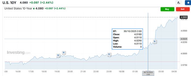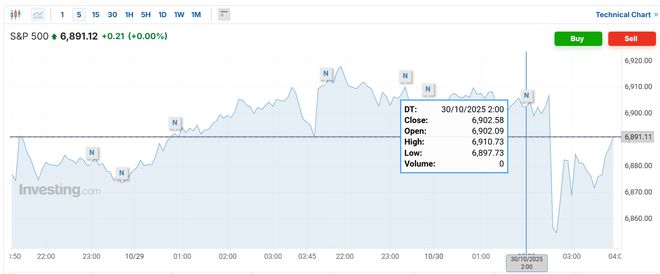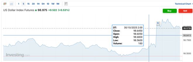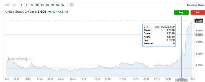 美联储发布10月决议声明前数分钟,美股、黄金日内上涨,美债、比特币日内下跌: