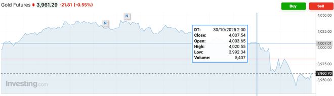 - 现货黄金维持1.1%的涨幅,结束此前几日的下跌态势,但仍位于4000美元整数位心理关口下方。
