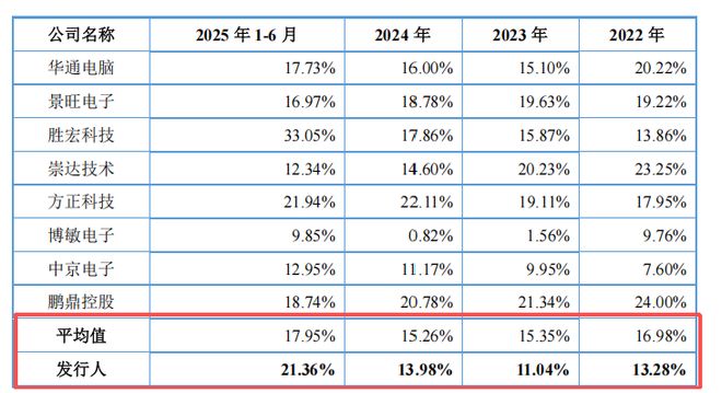此次IPO,红板科技计划募集资金20.57亿元,用于年产120万平方米高精密电路板项目,而招股书显示,公司历年的PCB产品的产能均不到90%。其中,2022年产能利用率为71.96%,2023年为85.01%,2024年为88.51%,2025上半年为88.63%。