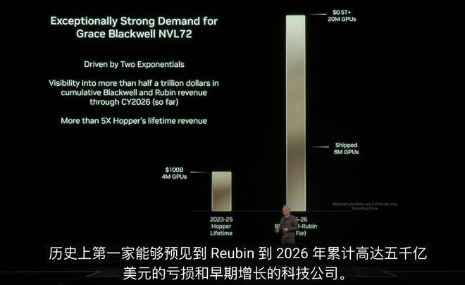 我认为,在Blackwell以及Rubin早期增长态势上,2026年我们很可能是历史上首家能够看到5000亿美元业务规模的公司。正如你所知,2025 年尚未结束,2026 年也尚未开始。这就是账面上的业务量,迄今为止已达半万亿美元。