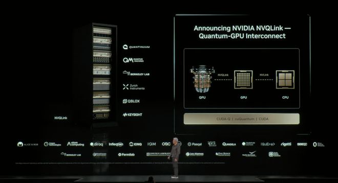 你知道,首席执行官们,我们不会只是坐在办公桌前打字。这是一项体力活。体力工作。所以,今天我们宣布 MVMVQL链接,它MVQ 链接。通过两件事成为可能。当然,这种互连可以进行量子计算机控制和校准、量子纠错,还可以连接两台计算机(QPU和我们的 GPU 超级计算机)以进行混合模拟。它也是完全可扩展的。