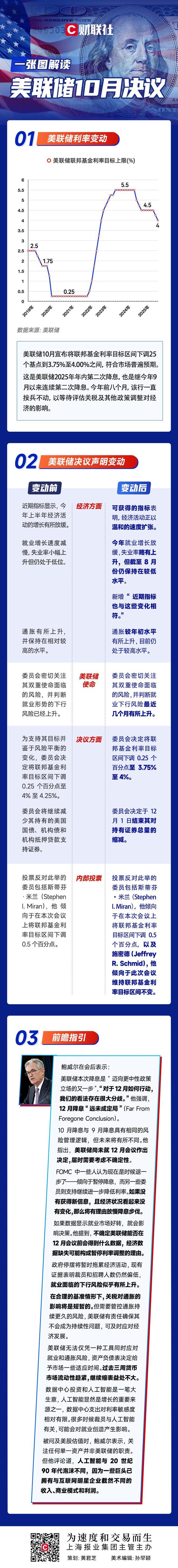 xm外汇官网:一图解读美联储10月决议:如期降息25基点,但鲍威尔说12月有点“悬”!
