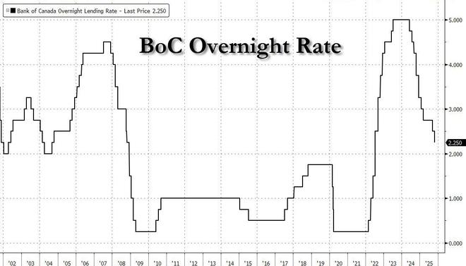 当地时间周三,加拿大央行下调利率,为连续第二次会议将基准隔夜利率下调25个基点,本次降息后利率为2.25%,是自2022年7月以来的最低水平。