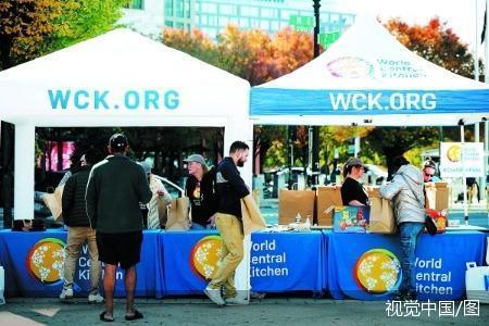 27日,美国华盛顿,受政府停摆影响的联邦雇员领取当地餐馆准备的免费餐食。