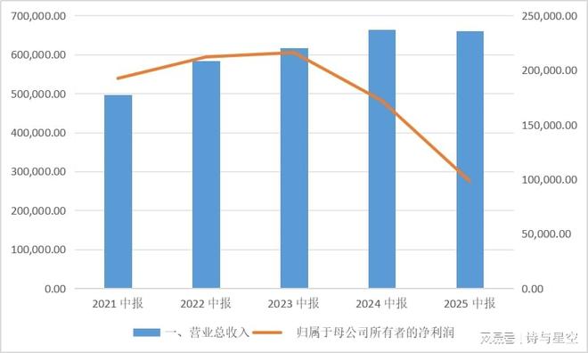 2025年上半年业绩进一步恶化,营收66.03亿元微降0.54%,净利润9.83亿元同比大降42.85%,净利率从2023年的32.79%骤降至2025年上半年的14.11%,近乎腰斩。
