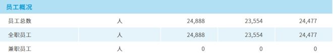 截图显示中通快递2022-2024(从左至右)员工情况
