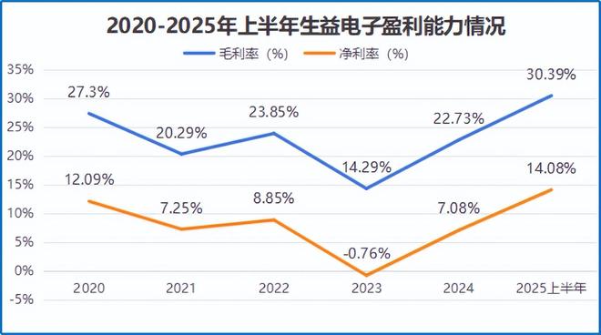 也是因为高端产品的放量,2025年上半年,生益电子的毛利率攀升至30.39%,较2024年提升近8个百分点,还超过了鹏鼎控股(19.07%)等同行,盈利能力进一步凸显。