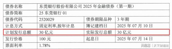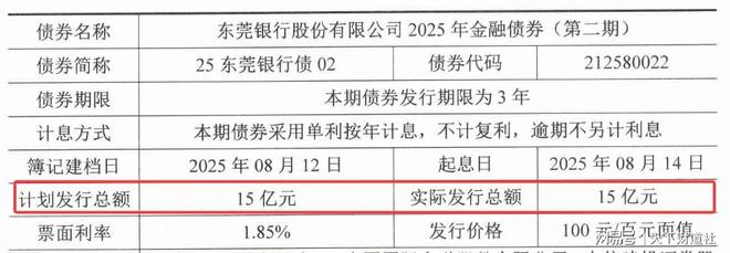 2025年7月10日、8月12日东莞银行又分别发行金融债30亿元、15亿元。