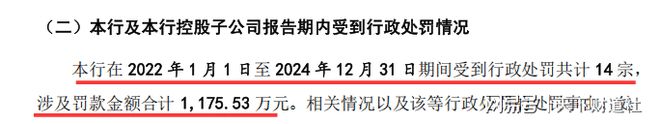 根据东莞银行最近一版招股书,报告期内,该行共受到14宗行政处罚,罚款总额达1170多万元,其中2024年一年内就发生4宗。