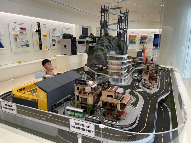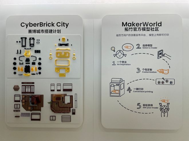 2025年9月30日,首家拓竹线下旗舰店在深圳万象城开业。店里展示了多个型号的打印机和各种3D打印而成的鞋子、玩具、工艺品、首饰、模型等等。即使在工作日,这里也围着相当数量的家长和孩子。