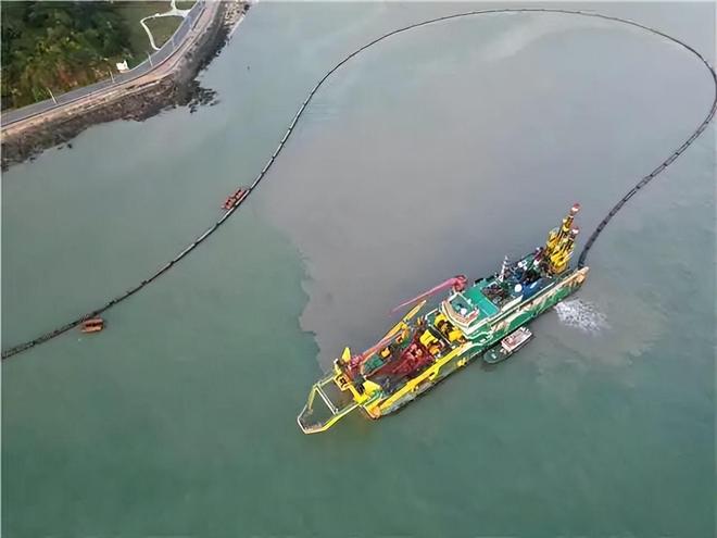 正当施工步入正轨,深夜的暴雨中,2号泥泵排压突然降低,流速增长至每秒6.5米。“距船800米处管线冒出混汤!”输泥管线是船舶的“血管”,一旦泄露不仅前功尽弃,还可能污染海面。芮海滨立刻拨通项目部应急电话:“管线疑似破裂,请求管线队支援!” 同时安排二副郭小强带队乘小艇排查漏点。