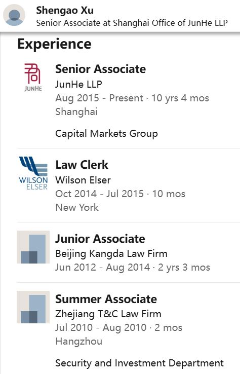 据领英信息,许晟骜2008年至2012年就读于浙江理工大学法学专业,随后赴美国福特汉姆大学攻读法学硕士,具备中国律师资格和美国纽约州律师资格。
