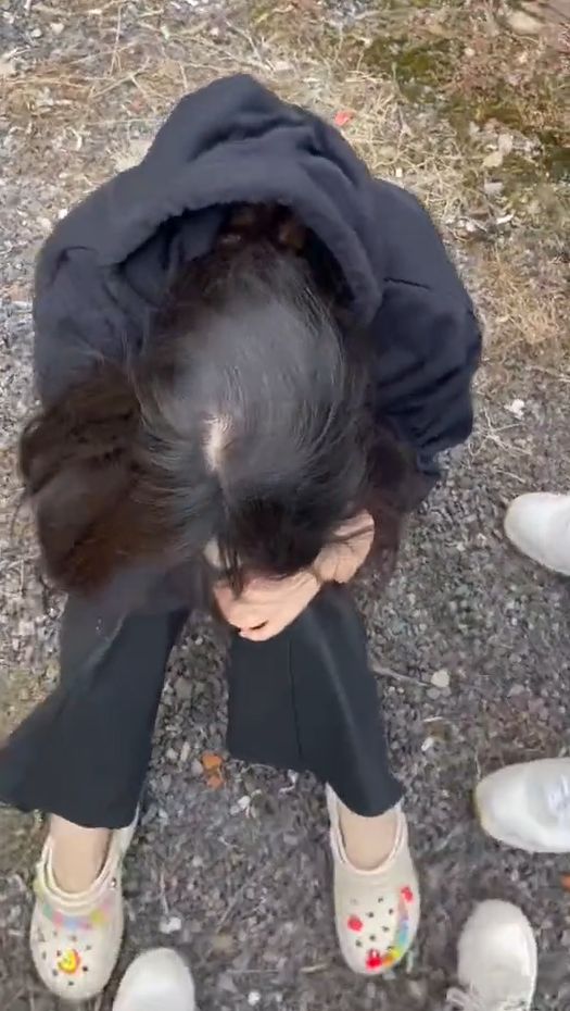 截图自网传视频,同行黑衣女子坐在地上埋着头。