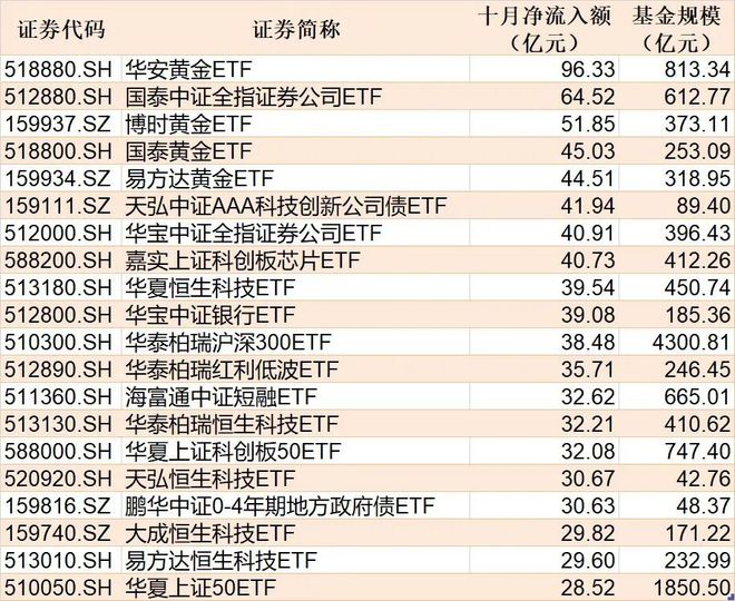 Wind数据显示,在10月31日的非货币ETF市场中,华泰柏瑞沪深300ETF基金份额增加10.63亿份,净流入额为50.84亿元;华夏上证科创板50ETF基金份额增加10.98亿份,净流入额为16.47亿元;华夏上证50ETF基金份额增加4.84亿份,净流入额为15.35亿元。