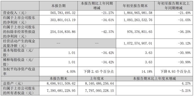 根据爱美客最新发布的2025年前三季度财报显示,今年前三季度,爱美客实现营收18.65亿元,同比下滑21.49%;实现净利润为10.93亿元,同比下滑31.05%;扣非净利润为9.76亿元,同比下滑36.20%。