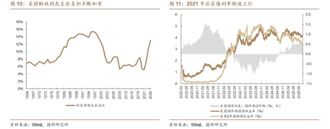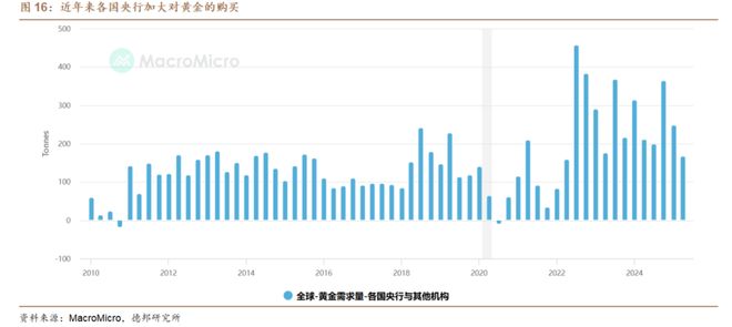 “去美元化”开始真正被市场重视是在2022年。随着美债规模的不断增加,美国财政利息支出负担愈发沉重,2021年大通胀后美债利率快速上升,进一步加重了美国财政的压力,世界对美债信用的“信仰”开始动摇,以美债为锚的美元货币体系开始出现裂痕。正是从2022年起,黄金开始脱离与美债实际利率的负相关性,开启了大周期的上行。2023年麦卡锡被罢免事件、2025年特朗普上台后爆发的关税风波更是进一步加速了“去美元化”进程。
