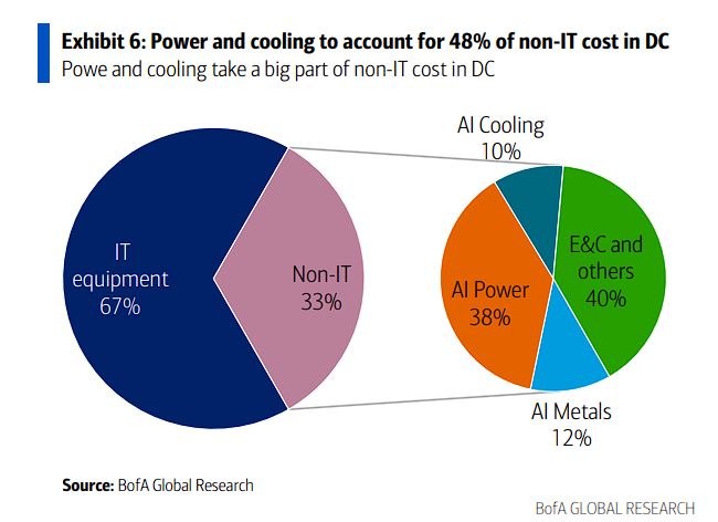美银指出,除了电力,高效散热和基础原材料也是构建AI大厦的物理基石,蕴含着巨大的投资价值。