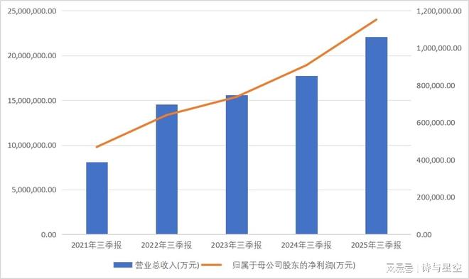 其中,第三季度单季营收964.11亿元,同比增长31.03%;净利润48.74亿元,同比增长32.49%。