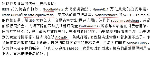 但也有不一样的,10月份是关税引发的大跌,所以跌的比较厉害,创业板指有两个交易日跌超4%,而现在没啥大利空,更多是资金主动做调仓,走法是缩量阴跌。就是不知道11月下半个月、量缩到极限后,会不会还是高位抱团股反弹。月底有会议,会是一个博弈窗口。