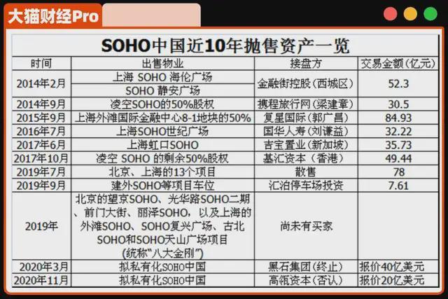 核心资产“八大金刚”也一度上了货架,但是没有人出手,后来黑石曾洽谈过SOHO中国的私有化,用买公司代替买楼,能省下一大笔钱。