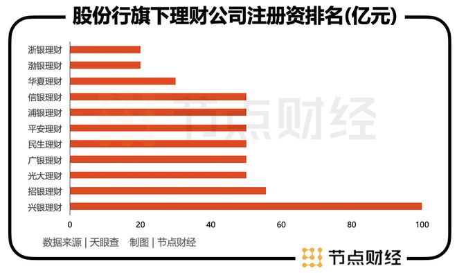 《节点财经》梳理,经此增资动作,兴银理财注册资本规模的排位将大幅提升,仅次于工银理财(160亿元)、建信理财(150亿元)、农银理财(120亿元),与中银理财并列行业第四。