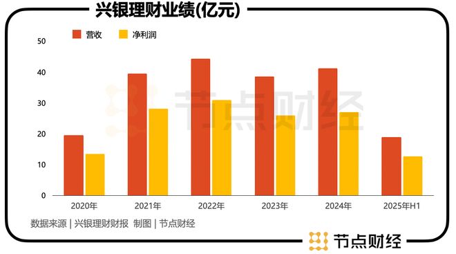 根据公司披露的信息,2025年上半年,兴银理财实现营收18.86亿元,同比下降5.23%;实现净利润12.62亿元,同比下滑5.89%。