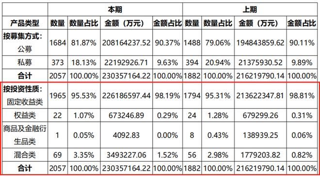 财报显示,2025年上半年,兴银理财的固收类产品规模达2.26亿元,占比超过98%;权益类产品规模仅67.32亿元,占比尚不足1%—0.29%。
