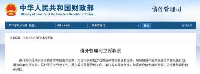 财政部机构上新了。11月3日,财政部官网“机构设置”栏目更新信息显示,财政部债务管理司已列入“部机关”列表。