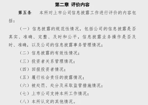 按照今年3月修订的沪市上市公司自律监管指引第9号——信息披露工作评价,涉及信披规范性情况、有效性、投资者者关系管理情况、回报投资者情况、被处罚处分及被采取监管措施情况等,意在引导和督促公司及相关信披义务人提高信披质量,保护投资者合法权益,增强投资者回报。
