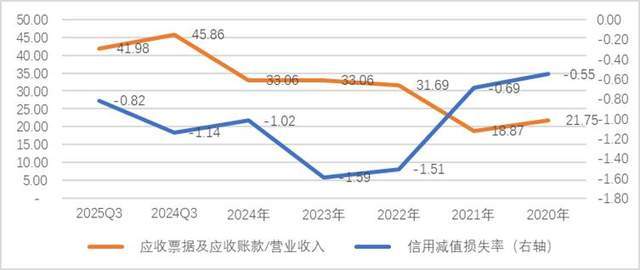 映射在利润表则是信用减值损失率(信用减值损失/营业收入),2023年为峰值1.59%的水平,2024年1.02%,2025年三季度进一步好转,降至0.82%。